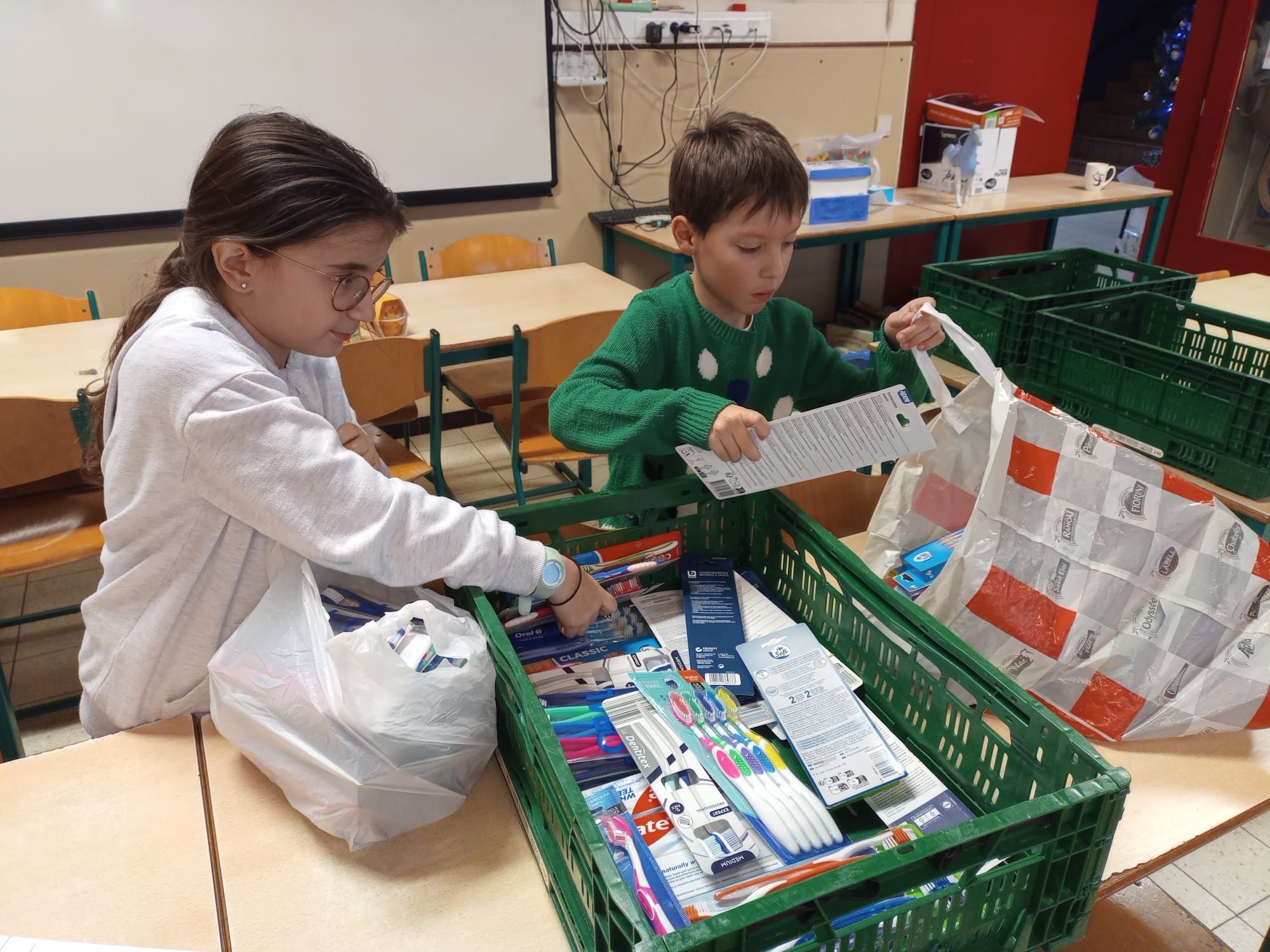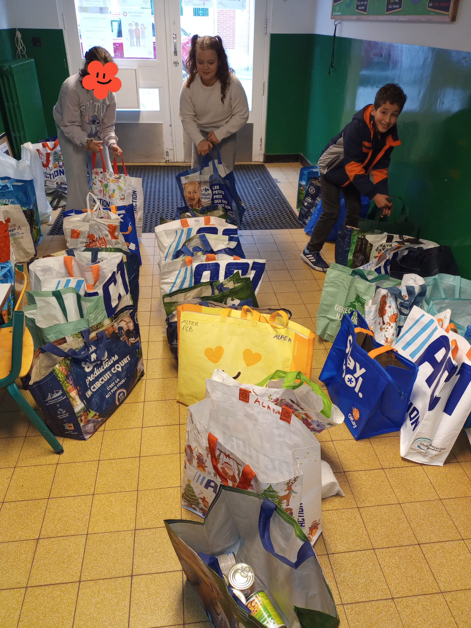 À l’occasion de la fête de Noël, notre école a organisé une grande récolte d’aliments non périssables.Munis de sacs bien remplis, les élèves des quatre classes de 5P et 6P sont allés porter le tout à l’association Saint-Vincent-de-Paul.Les dons seront redistribués, la demande étant importante.Ce fut un beau moment de partage de Noël.